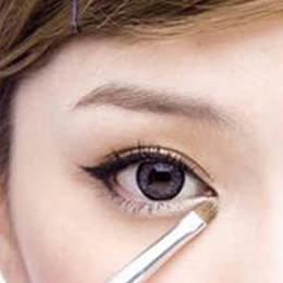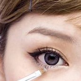 step7. 使用眼影刷沾取银白色眼影,从眼头描绘到眼尾,范围不要超过卧蚕喔!不然会破坏美感。