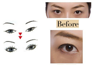 单眼皮与内双的眼形由于眼皮较厚,睁开后往往容易将已画好的眼线“吃掉”。想要改变这样的眼形,略微加粗的眼尾眼线很重要。