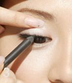 稍抬起上眼皮,用眼线笔在刚才的眼线上描绘,使眼线自然变粗。此时,也可将眼线刻意描粗,打造更圆的眼睛形状。