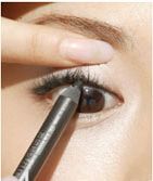 第一步、抬起眼皮,用眼线笔从眼尾开始描绘