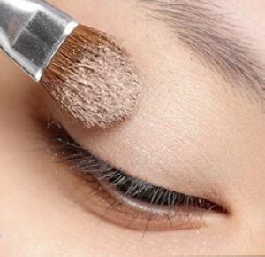 step 1:用接近肤色的金色眼影打底,淡金色可以提亮眼睛。或者还可以适当利用咖啡金色眼影,覆盖于眼线和双眼皮位置,让眼线变得柔和。并用手指把双眼皮位置的颜色,稍微熏染到眼窝位置。