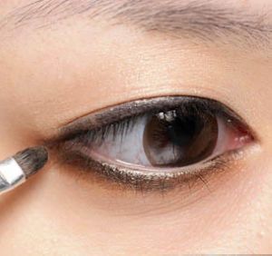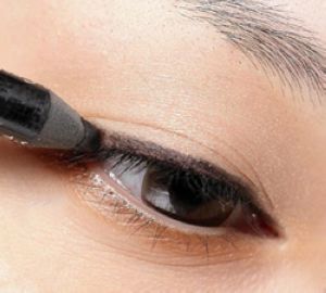 单眼皮与内双的眼形由于眼皮较厚,睁开后往往容易将已画好的眼线“吃掉”。想要改变这样的眼形,略微加粗的眼尾眼线很重要。