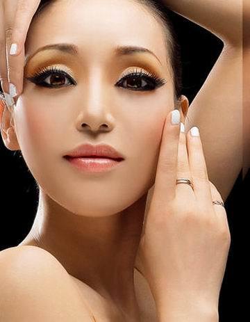 像这样的不太复杂的妆容,主要突出眼妆,然而睫毛是很重要的,假睫毛的选择和眼影的画法需要很好的搭配。这款妆容的眼妆贴了假睫毛后并没在睫毛上做过多修饰,只是在睫毛尾部贴了亮片,眼影也不会过于夸张,若参加聚会或者PARTY也不会让人瞠目结舌。化这样的眼妆也不需要太高的化妆技巧,大部分 MM都可以掌握,比较简单容易。