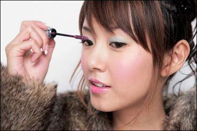 三,接着我又用珍珠白+粉红色盖斑膏遮盖眼袋灰暗部位,遮盖面积不能太大,要不眼袋就遮不住了。这样处理眼袋会在光的反射作用下产生视觉混淆效果,眼底会显得格外亮丽。最后在微微的上眼皮处画上粗粗的眼线,涂上浓密的睫毛膏来加深眼睛明亮的效果。微微看到她的眼袋隐形了,开心极了,好一个幸福的小新娘。