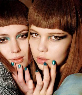 深棕色眼影紧贴上眼睑涂抹,再在外眼角向上使用金棕色眼影,要晕染自然。描绘黑色的清晰眼线,浓密的睫毛膏也不可少。