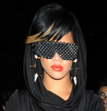 作为玛丽莲·曼森的女友,伊万·蕾切尔·伍德用向来出位的着装证明他们是般配的。这种心形框的眼镜在满是明星的比弗利山街头难得一见,就算是引领潮流的名人们也没有敢于带上它招摇过市的,可蕾切尔·伍德就敢,而且是多次,心形眼镜成了她的专利。比她更甚的是“光头型女”艾波·罗丝,看看吧,又一位火星来客。最能把怪形眼镜搭配出效果的是蕾哈娜,这样的眼镜在她脸上非但不怪还很美。