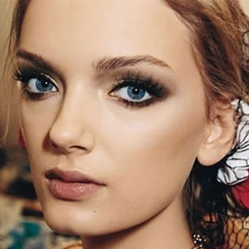 用金棕色腮红在颧骨最高处轻轻扫过,留意眼影和唇部的色彩要和腮红相匹配。