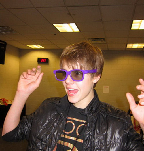 2010年12月27日讯,小天王贾斯汀·比伯(Justin Bieber)在人气微博网站Twitter上发布了戴着紫色眼镜的照片,只见他“张牙舞爪”一脸惊讶表情,可爱无敌萌到爆。