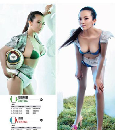 这两个足球宝贝又是同样感觉的造型。向后梳的利落的马尾辫,露出光洁的额头,眼影颜色带点暖感的珠光,唇色略微苍白,整体妩媚中透着高傲冷艳。倒是很吻合法国人的感觉。