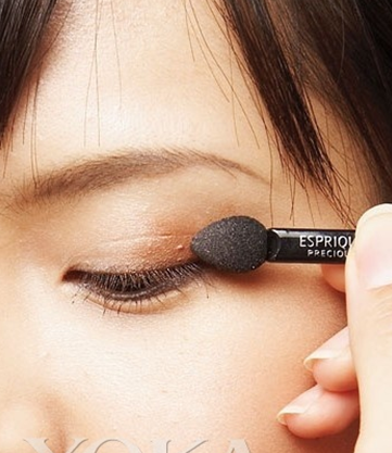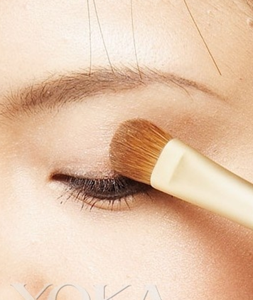 用刷子将眼皮中间深浅的两色晕开成自然的渐层色。