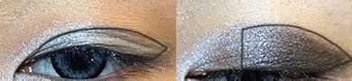 用黑色或是深蓝色眼影上满整个眼球区域,如果想要有party效果,可以先上一层银色系眼影,这样不仅能让你的双眸非常闪耀,还能防止花妆,眼头部分可以用咖啡色来进行过度。