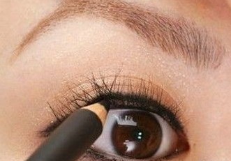 接着补上内眼线,mm们千万别忘了内眼线,否则眼皮内留白,可以说是妆容的一大败笔哦,内眼线也可以使眼睛更为有神。