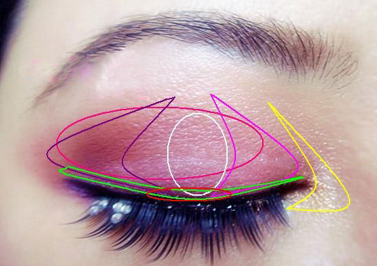 先用A色大面积打底,稍重画眼中,拉长后眼尾部分,空出眼头部分