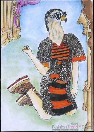 为了强调这款眼镜配饰所隐含的独特感和创意感,Prada 选择通过三个插画家的作品来对其加以诠释。Ivo Bisignano、Marcela Gutierrez 和 Andrea Tarella 以个人视角并根据其各自的插画表达手法诠释了米兰和北京两场秀所展现的巴洛克眼镜系列:从水彩画到彩色粉笔画,再到丙烯画。插画家独特的技巧巧妙地展现了这款眼镜的风格。