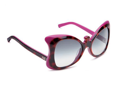 中央窄两边宽的蝶形太阳镜用夸张和妩媚征服了众多设计师,一季又一季张牙舞爪地席卷到2010 年,比如Balenciaga 的新品。你要是还对蝶形没什么概念,那么肥肥姐戴的那款眼镜,就是经典蝶形,现在你有概念了吧。基本上蝶形太阳镜最适合得天独厚的小脸,向上扬起的蝴蝶形会把眼部线条向上美化拉伸,避免了过于呆板的横向线条加重颧骨宽度。只是,作为东方人,蝴蝶框两侧高起的方型容易贴上平板的颧骨,非西方人那样恰好贴在脸型两侧,而且睫毛容易碰到镜片。