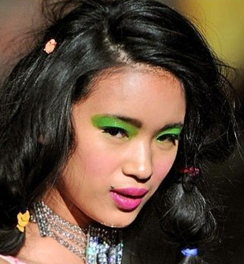 L.A.M.B秀场上我们看到一款亮眼的妆容,鲜艳的荧光绿眼线如同蝴蝶翅膀一般飞上双眸,闪耀的珠光色泽让摩登与前卫感演绎到极致。只需要在上眼睑处贴近睫毛的地方画上一条两边细中间宽的羽翼眼线。