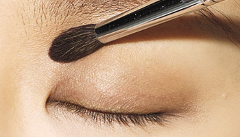 在上眼睑大范围涂抹大地色系眼影,打造上眼睑的立体感。