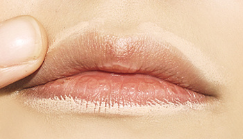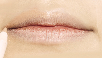 嘴唇周围涂抹遮瑕膏,采用由外向内的方向拍打着涂抹。