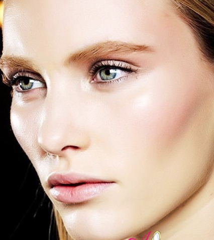 范思哲 (Versace) 2011秋冬秀场的彩妆师为我们带来了一款独特的妆容,在苹果肌以上眼尾四周、眉骨处都刷上了一层薄薄的粉色腮红,眼部则使用了红赭色眼影晕染,呈现出醉酒般的自然晕红,迷离之中却又透出一丝性感的味道。