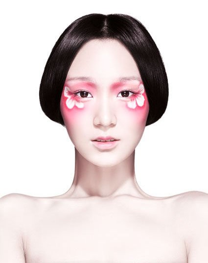 如醉花瓣攀在两颊,似桃花般清新宜人,迷离的双眼散发出醉卧时的芬芳,娇憨和纯真一触即发。肌肤被映衬出一种香甜的白。