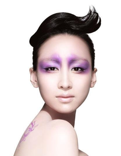 风情里透出复古气息的紫色,尽显她的袅娜妩媚。一抹紫色晕染于眼眉之间,让肌肤的白更加清冽风情起来。