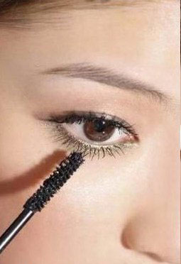刷上眼睫毛的方法就不在此赘述了,这里要提示的是下睫毛。很多女孩因为害怕化妆,从来都不刷下睫毛,但是下睫毛的作用是很大的,它可以放大眼睛。刷下睫毛的时候要选择小刷头的睫毛膏,在纸巾上蹭掉多余的膏体,然后刷头梳起来,用顶尖的部位慢慢描画。