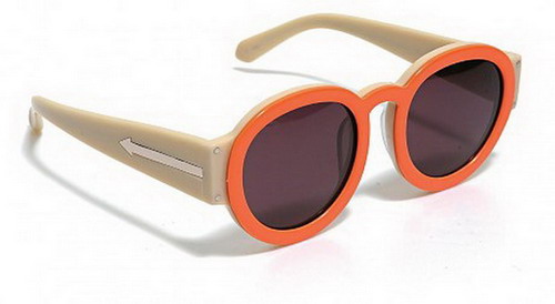 Karen Walker从07年开始推出眼镜系列,以胶框太阳眼镜为主。今季的主打款镜框采用了椭圆的设计,胶臂上刻有Karen Walker的箭嘴标志。肉色的胶臂配上镜框的荧光橙,用色鲜艳不在话下,重要是两种颜色的搭配恰到好处。