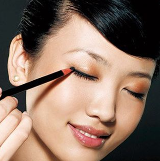 要采用鲜明颜色的眼影或眼膏,清晰的画出眼部的轮廓,也就是说,眼部必需描画的具有宽度感。如此才能让下巴变窄的效果更好。