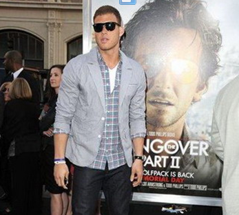 好莱坞,NBA(微博)球星布雷克-格里芬出席电影《宿醉2》的首映礼,墨镜扮相酷似“黑超特警”。