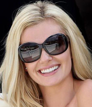 搭配亮点:有时候人们说置之死地而后生,Katherine Jenkins的这种搭配似乎与这句古老的俗语有着异曲同工之妙。时尚款的墨镜在如今的时尚界恐怕已是司空见惯的了,但多数都是搭配着烈焰红唇,甚少明星愿意以这种轻柔的裸妆示人。椭圆脸型的她也敢于利用自己的脸型优势,选择的墨镜形状范围较宽。再用接近肤色的粉底和腮红颜色,配以淡淡的唇蜜,反而更有一种清爽自然的悸动。