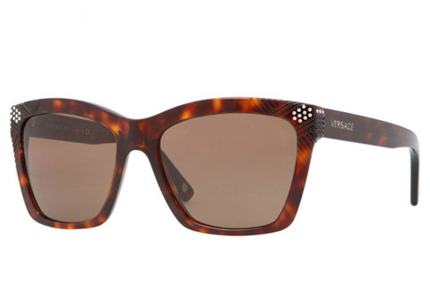 2011春夏Versace配件不只是玩弄梅杜莎女妖,自以为把女妖弄得亮晶晶就性感无敌。这次的太阳眼镜各种框型都有,但跟PRADA那种惊讶不已的高耸眉毛框,或者是深怕路人不知道你戴的是LV而把monogram直接印在镜片上手法比起来,Versace在配件的部分显的内敛许多,简单的以细小的水晶Logo点缀在镜角,或者是以对比色将品牌名称在侧边镜架镶嵌,Versace的手法不只是年轻,但多了许多优雅的气质,与品牌性感的成衣相得益彰。