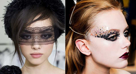 2011-2012年秋冬巴黎高级定制服装秀虽然刚结束不久。香奈儿的妆容主要是集中在眼妆上,黑色蕾丝饰出眼妆致命吸引力。Dior秋冬高级定制同样选择突出眼妆的设计。用碎钻和闪粉打造出别样华美的妆效,让眼睛也如同宝石一般闪烁。