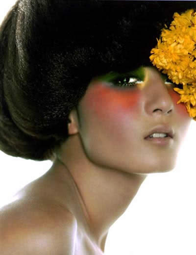 大幅度的时尚另类彩妆,整个色彩用的很鲜明。
