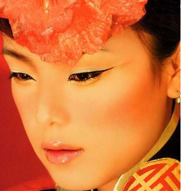 这个妆容主要突出的是眼妆,古典的妆容丹凤眼的魅力气息。