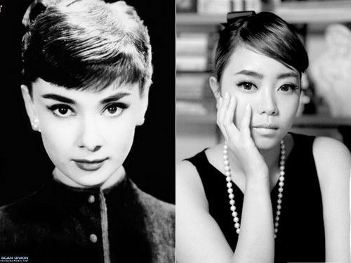 奥黛丽赫本的造型其实不是很像,关键还是脸型的关系。不过整个来说,还是比较神似的黑白的经典造型看上去很有味道。