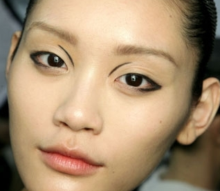 一般描画眼线都会沿着睫毛根部,但是今年的T台上,彩妆师门另辟蹊径,用浓黑的眼线产品出其不意地在眼皮上重新画出一条舒展的眼线,神奇灵动的双眸立即呈现。