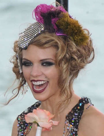 影集90210《飞跃比佛利》的女主角之一AnnaLynne McCord,为了搭配她夸张的派对扮相,特地化上了夸张的蓝紫色大烟熏妆,看样子烟熏真的是为造型加分的好帮手喔!