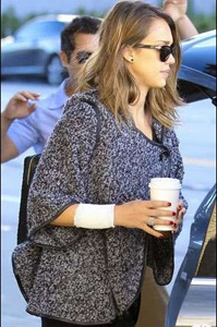 图一:Jessica Alba芭姐这次没有扎丸子头了,就是随意的中发,不过还是很有范儿。
