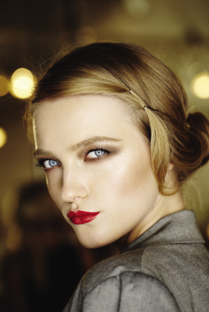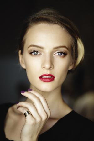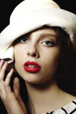 整个妆容侧重于唇部,极其至美性感,呈现出和谐、冷静与时光永驻的优雅妆效。配合亚光肤色均匀清新,不泛丝毫油光,透现自然闪耀的无瑕面庞。两颊腮红若有似无,尽显古典主义妆容风格的大师级手笔。