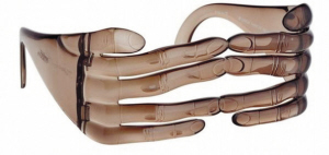 和先前Lady Gaga在《Paparazzi》MV中配戴的米奇眼镜大不相同,这回联名发表的JS Hands手指镜框造型眼镜就像黑夜中一双诡异的双手环绕脸部,造型之夸张根本并非平常人敢戴上街的,另外一款圆形镜框长出翅膀来的眼镜,有胆气的潮人白天也能尝试下。