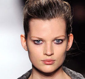 黑色膏状眼影可以让整个造型趋向边缘化,如果混合了比较柔和的颜色,你的妆容看起来坚韧的同时也可以非常美丽,在Narciso Rodgriguez秀场上,我们看到了这款眼妆,化妆师将黑色和紫色眼影混合重新装早出一个薰衣草的色调,并用一个小的眼影刷将上眼睑和下睫毛处画上一条眼线,并且稍微晕染一下,同时搭配微粉的双唇。