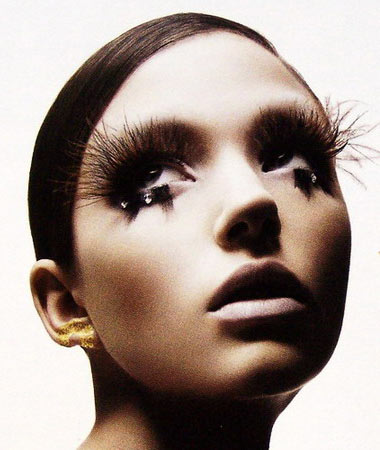 涂睫毛膏前先把睫毛夹贴在上眼皮,然后夹住睫毛,夹好后慢慢把睫毛往上卷,不要用力,以免夹掉睫毛。睫毛夹好之后,眼睛稍微往下看,在每根睫毛上涂一点睫毛膏。涂下睫毛时,应把睫毛刷竖立,然后在夹好的睫毛上一根一根地慢慢涂。 |