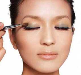 单眼皮的人眼部给人比较晦暗的感觉,所以要用明亮或带有珠光效果的眼影突出亮丽的感觉。上眼影时不要水平地涂抹,而是以画半圆的方式涂抹在眼睑上。