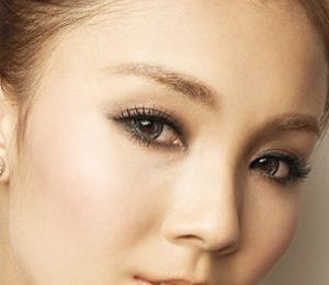 晕染下眼影、斜扫粉橘色系腮红,营造面部立体感、唇色尽量浅淡,弱化唇部印象。