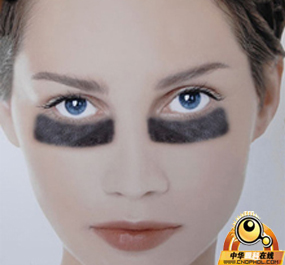 3、要修饰眼袋,可用刷具取适量遮瑕膏,沿着眼袋外围轻轻涂上,遮瑕膏的颜色需比正常肤色浅一号。