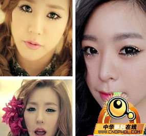 少女时代tiffany的泪眼妆里面假睫毛可是绝对少不了的。假睫毛要选择自然些便可以。下睫毛以分株式的典型方法黏上。