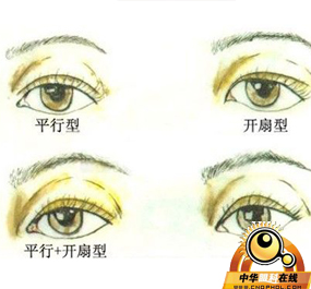 2、开扇型:为上睑皮肤皱褶自内眦或靠近内眦处开始,向外上逐渐离开睑缘,由窄变宽如同一把折扇打开,也称广尾型。这种形态的重睑显得秀丽妩媚,平常所说的“丹凤眼”就是这种眼型。北京叶子整形医院专家介绍,一般来说椭圆形脸适合做平行型双眼皮,圆形脸适合弧形双眼皮,而瓜子脸以开扇型双眼皮为佳。