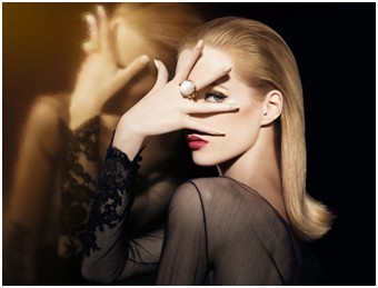 优雅的晚妆当中,性感的气息在颧骨、双肩、锁骨与颈线之间悄然流露,一切皆在以迪奥凝脂散粉的淡金点缀中低调而行。光影流转间,双眸熠熠生辉,天鹅绒般柔滑的眼妆一如蝴蝶的翩翩双翼:上眼睑处,精致灰金大片晕染;下眼线上,热情灿金色旖旎而过,魅惑美睫中点缀的精美水晶、珠饰定格华丽光影,致命诱惑就在眼眸流转间瞬间释放。