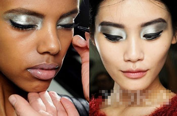 从眼皮的上半部分到下半部分利用银光色的眼影抹整个眼皮。对于亚洲人的我们来说,一定要注意勾勒出比较明显的眼线,这样才不至于让我们看起来眼睛浮肿。