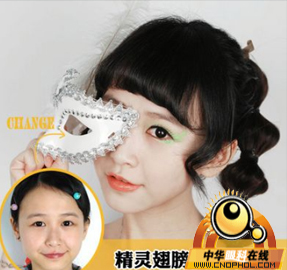 步骤四:在上眼睑贴上假睫毛,然后将睫毛刷一下,由于睫毛液的关系,可以将真假睫毛粘合在一起,这样子就不会分层,对于有的MM睫毛又硬又下垂的情况,最好在刷睫毛膏之前,先将假睫毛夹一下。